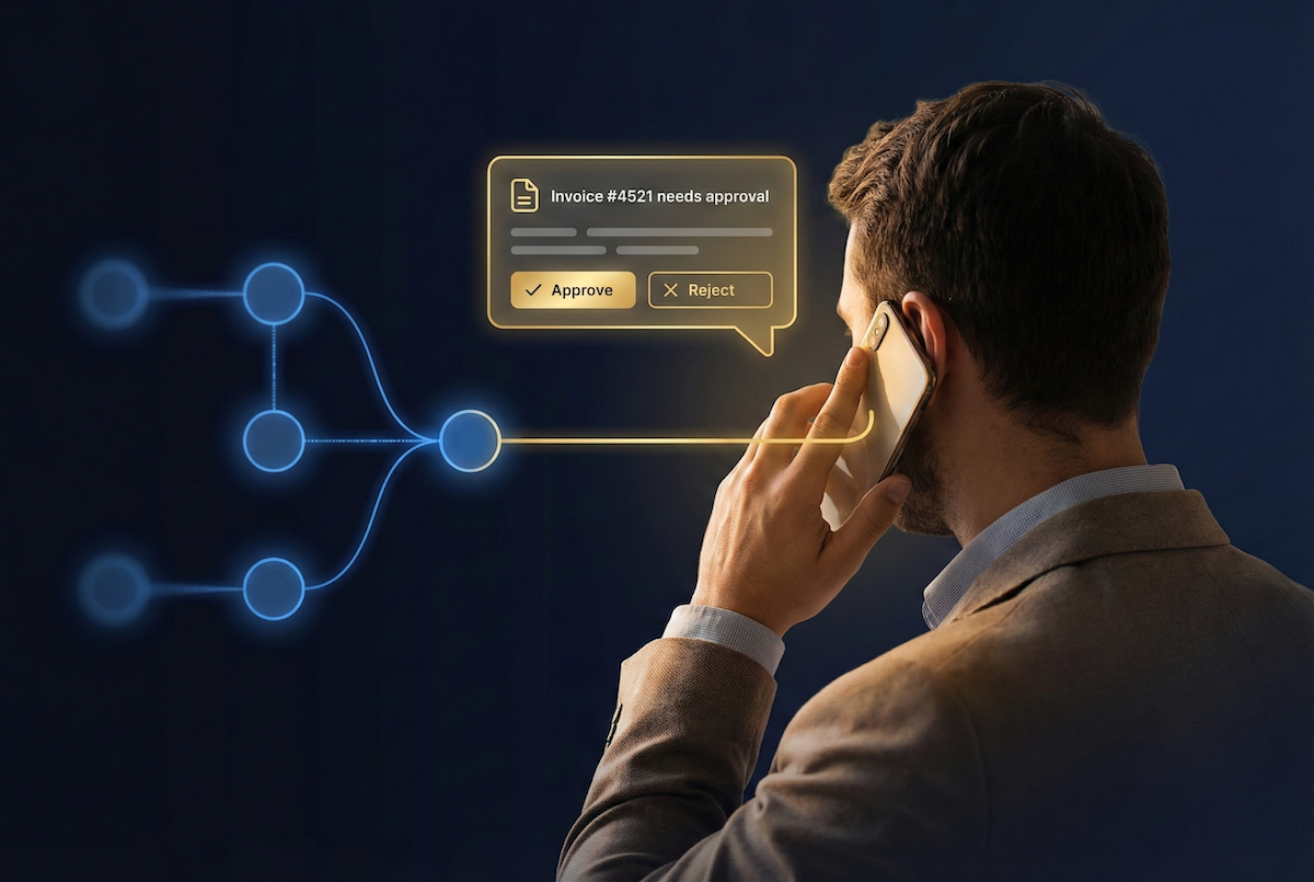 Human responds, workflow continues. No manual restart.
